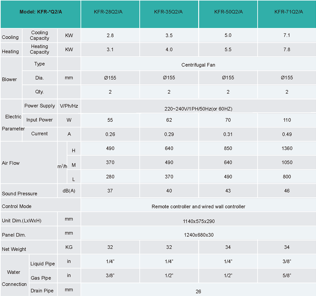 Heat Exchanger: Copper tube and hydrophilic AL fins, built-in or external electric expansion valve(optional)